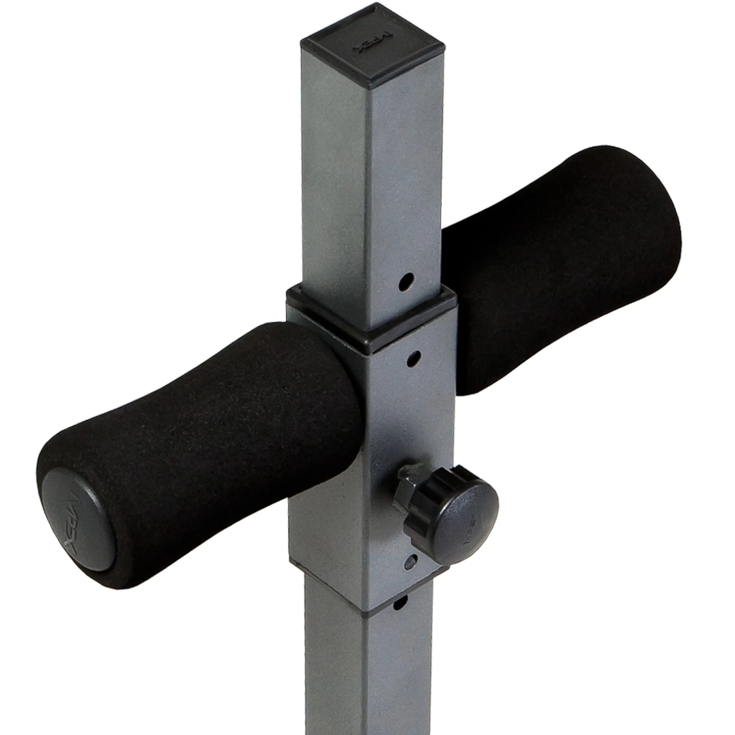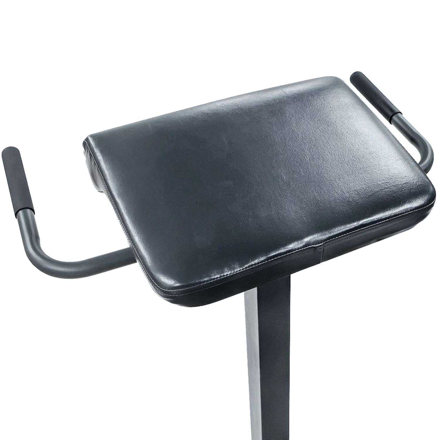 Con el Banco de lumbares Marcy JD3.1 Hyper Extension puedes fortalecer tu espalda de manera óptima y evitar problemas de espalda de la mejor manera posible.El Banco de lumbares Marcy JD3.1 Hyper Extension consta de un bastidor de acero estable con revestimiento en polvo y, gracias a su color gris neutro, se adapta a cualquier salón o gimnasio. Gracias a los rodillos de gomaespuma, que se pueden colocar en hasta 6 posiciones diferentes, y al acolchado de cadera de 6 cm de grosor, el aparato ofrece las mejores condiciones para un cómodo entrenamiento de espalda. Las patas antideslizantes garantizan un soporte seguro para cada sesión.