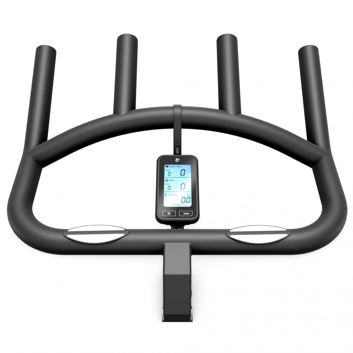 - Esta bicicleta está equipada con sensores de pulso por contacto en el manillar y sensores de cadencia en los pedales para realizar un entrenamiento monitorizado e inteligente.