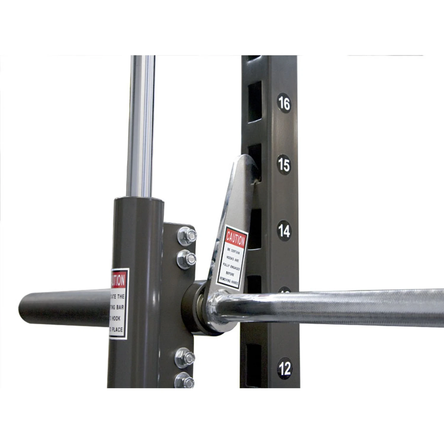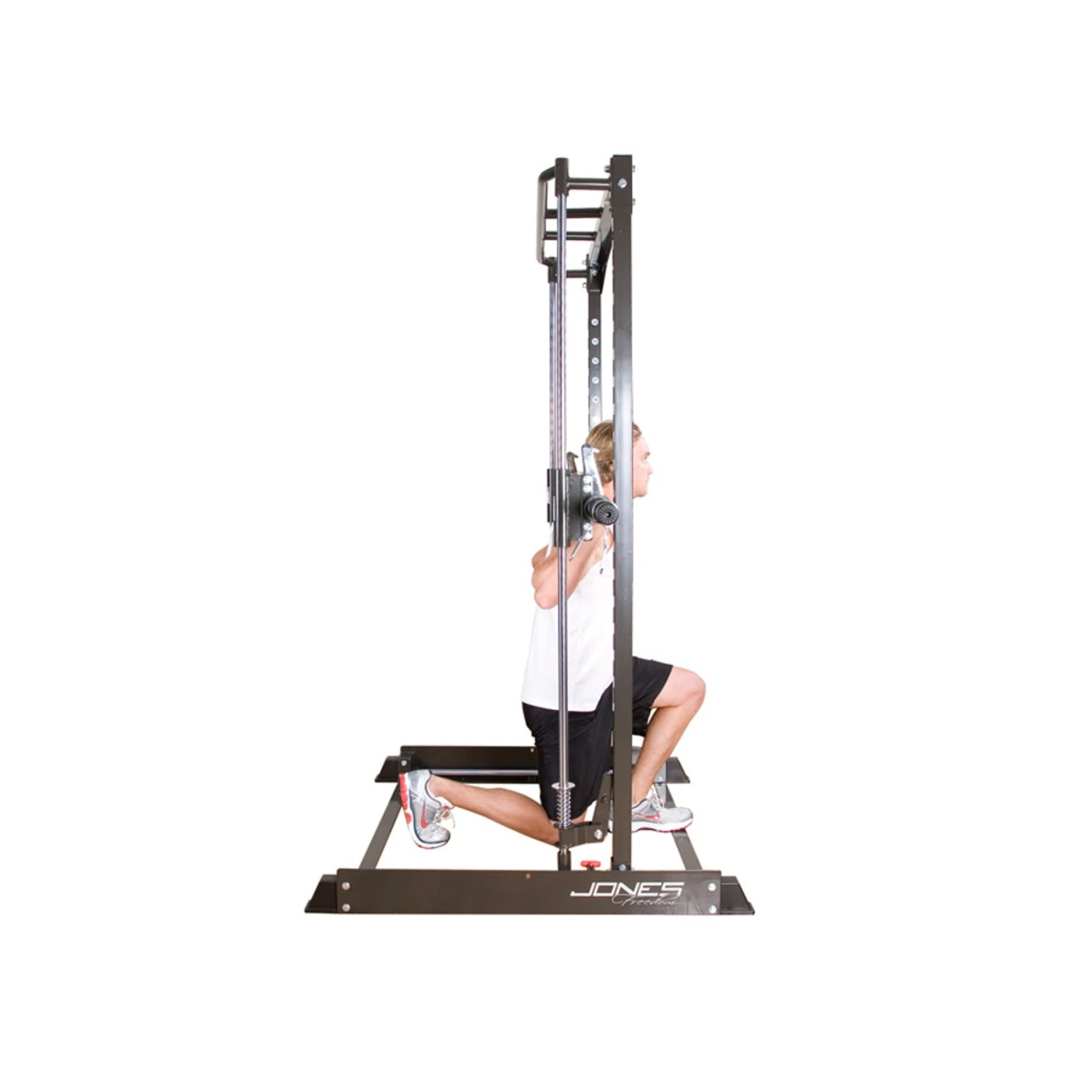El gran número de posibilidades de ajuste es lo que hace que la máquina Smith de BodyCraft pueda utilizarse de forma personalizada. Con la Máquina Smith Machine Jones Freedom de BodyCraft puede realizar todos los ejercicios con barra que se pueda imaginar. Las 20 ranuras para fijar la barra aseguran la máxima seguridad para los usuarios. La altura de los soportes de seguridad (con amortiguación) se puede ajustar como se desee, para que pueda restringir el movimiento de la barra hacia abajo. Esta función es especialmente útil a la hora de realizar ejercicios como las sentadillas o el press de banca sin compañero/a de entrenamiento. En la parte superior de la Máquina Smith Machine Jones Freedom de BodyCraft encontrará una barra para dominadas que también podrá utilizar para un gran número de ejercicios.
