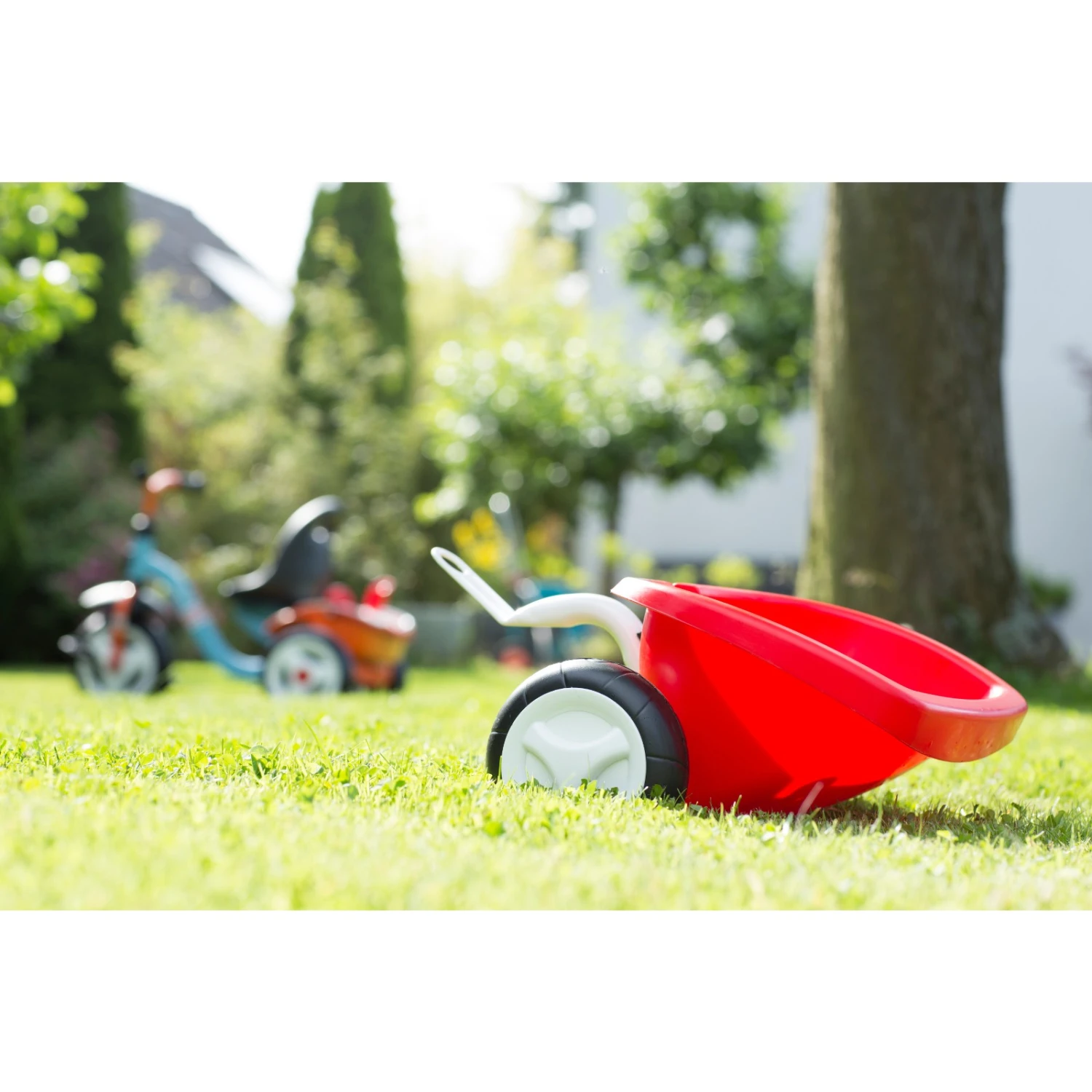 El Remolque para triciclo Kettler hace que montar en triciclo sea aún más divertido. El remolque está equipado con ruedas que apenas hacen ruido y un cajón para la arena que puede inclinarse y apoyarse en el suelo. Con el remolque, los niños podrán transportar un montón de cosas como arena y piedras.